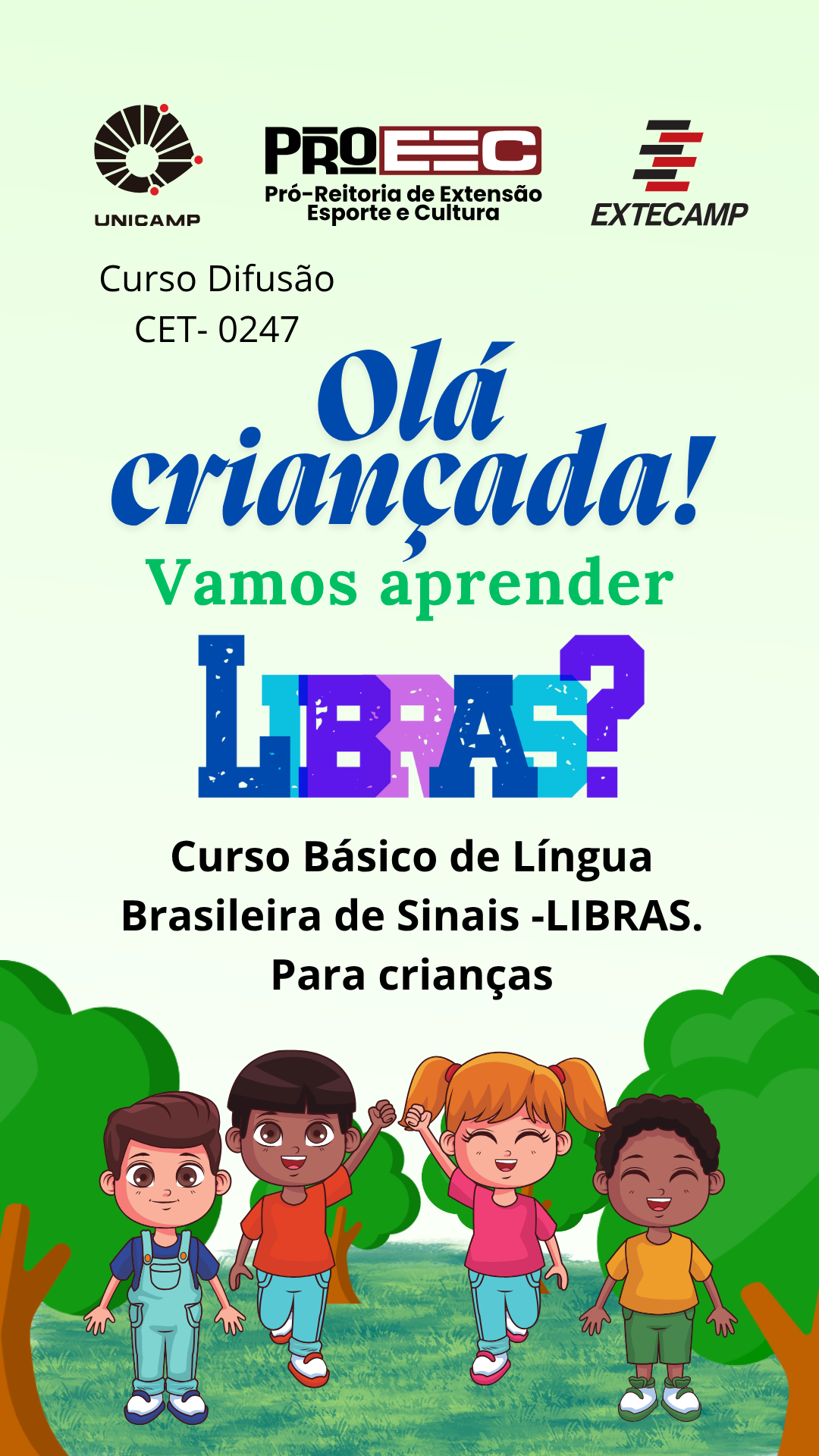 A Unicamp, por meio da PROEEC e do  Programa Ecoedu Ambiental da Faculdade de Tecnologia, tem a satisfação de lançar, de forma inédita, o Curso Básico de Libras para Crianças – EAD, uma oportunidade única para crianças a partir de 8 anos e também para adultos interessados em ingressar no universo da Língua Brasileira de Sinais (Libras).
